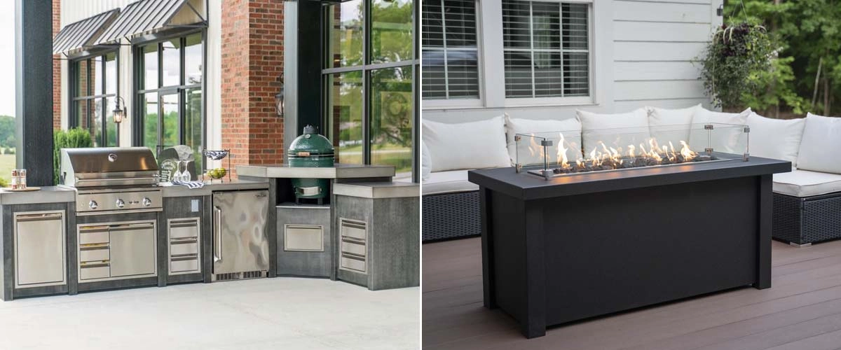 Our outdoor kitchens islands, and fire pit tables are expertly designed to elevate your outdoor space to the next level